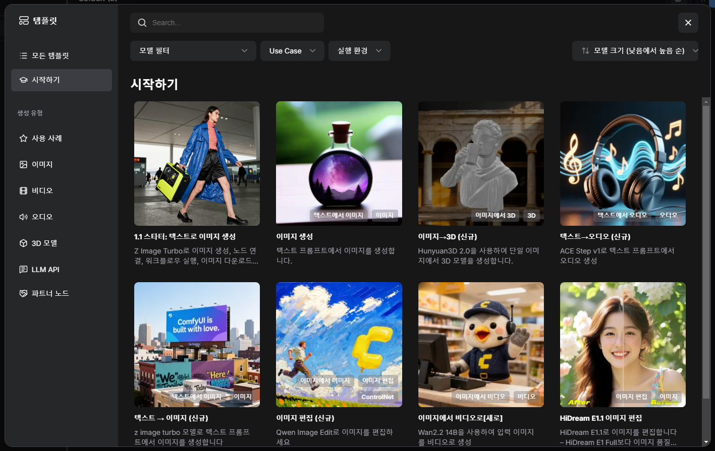 이번 글에서는 ComfyUI 템플릿 시작하기의 '이미지 → 3D(신규)'를 통해